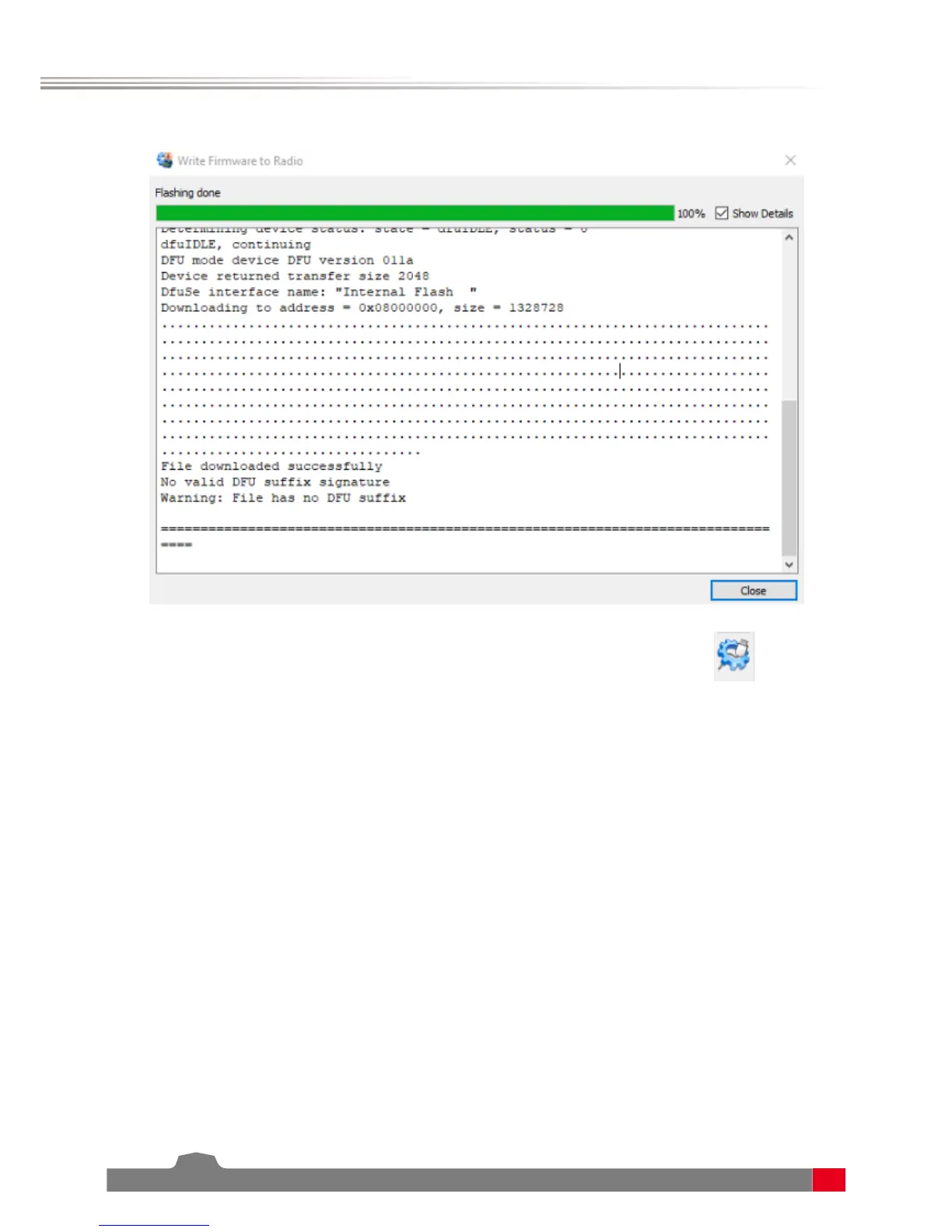 5. Once the ashing is complete, click done, disconnect the USB cable and power on the transmitter.