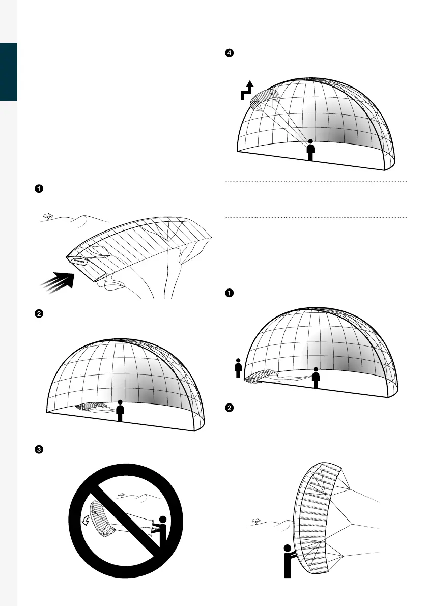 leading edge (LE) into the wind. As the kite shapes its form, the