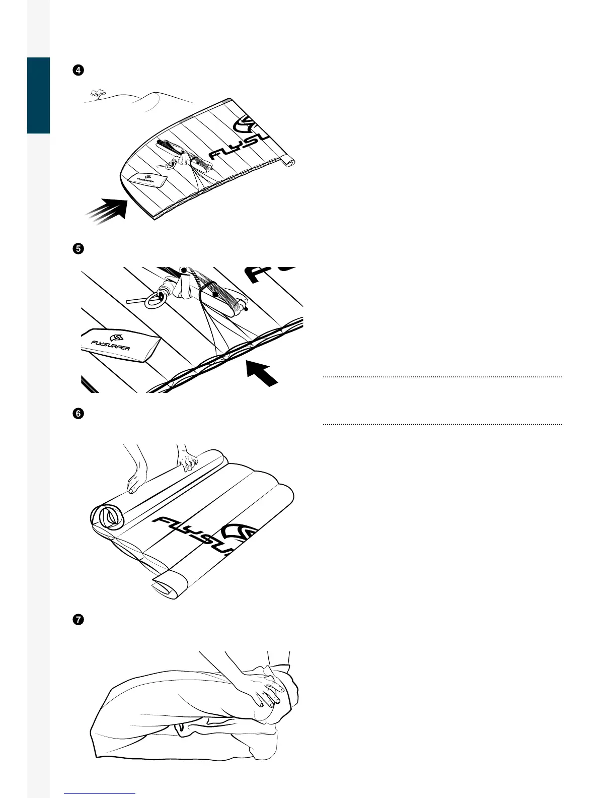 Roll up the kite around the bar. Make sure that no sharp ob-