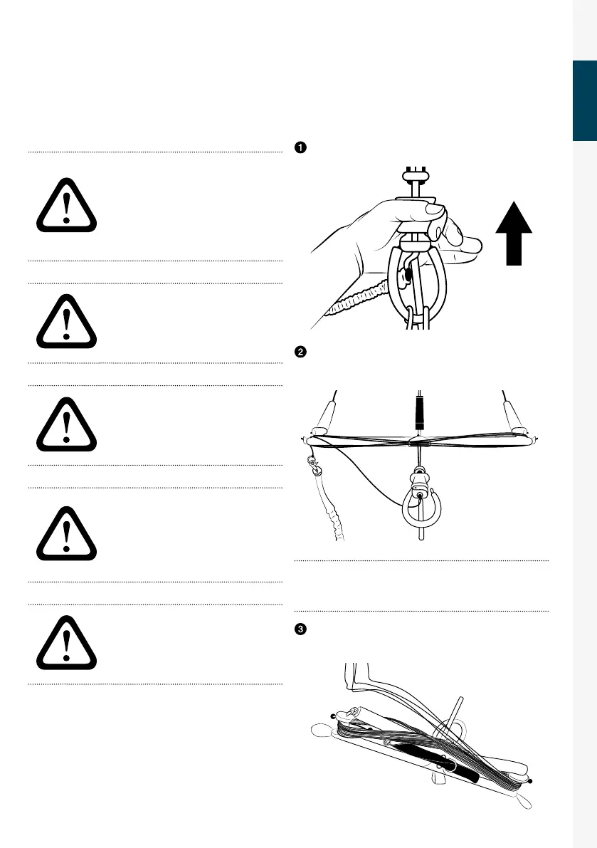 Work your way up the safety endline to the control bar. Wind