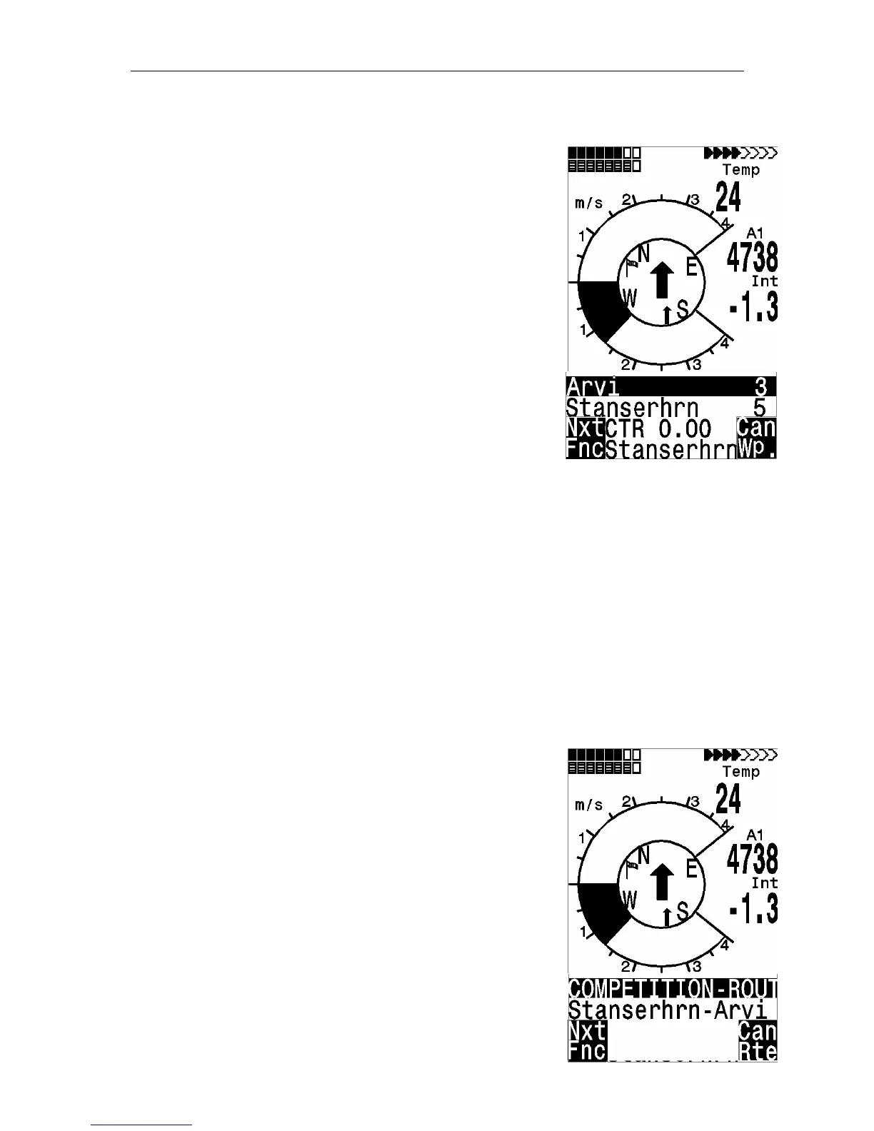 km, the 2. number shows the direction to WP (Bearing). After