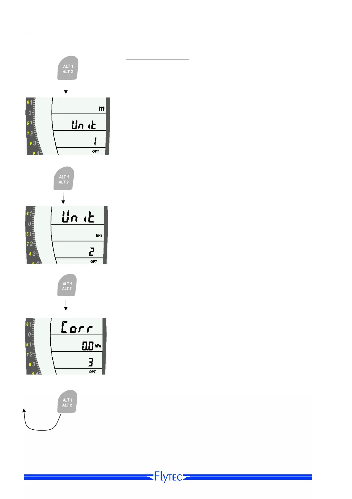Use the Arrow Keys to set the pressure units for ALT1 to