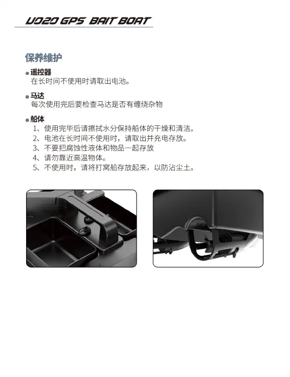 5、不使用时,请将打窝船存放起来,以防沾尘土。