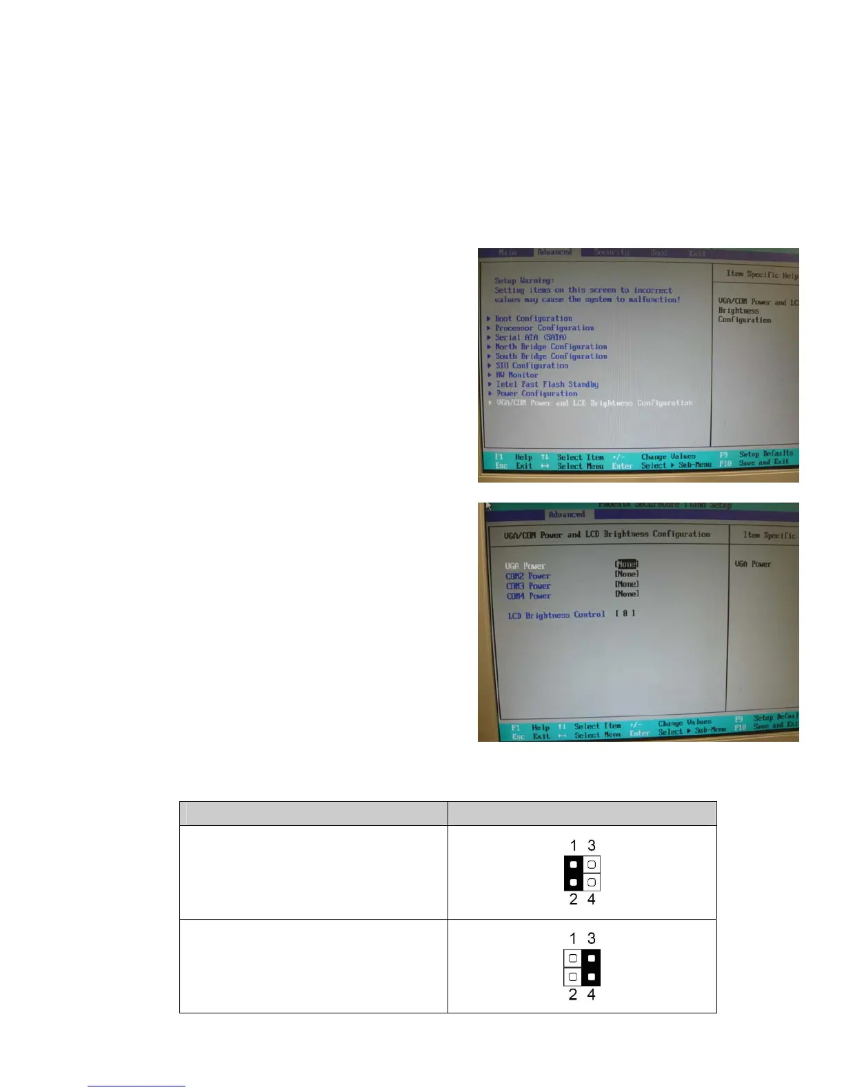 3. Select VGA/COM Power and LCD