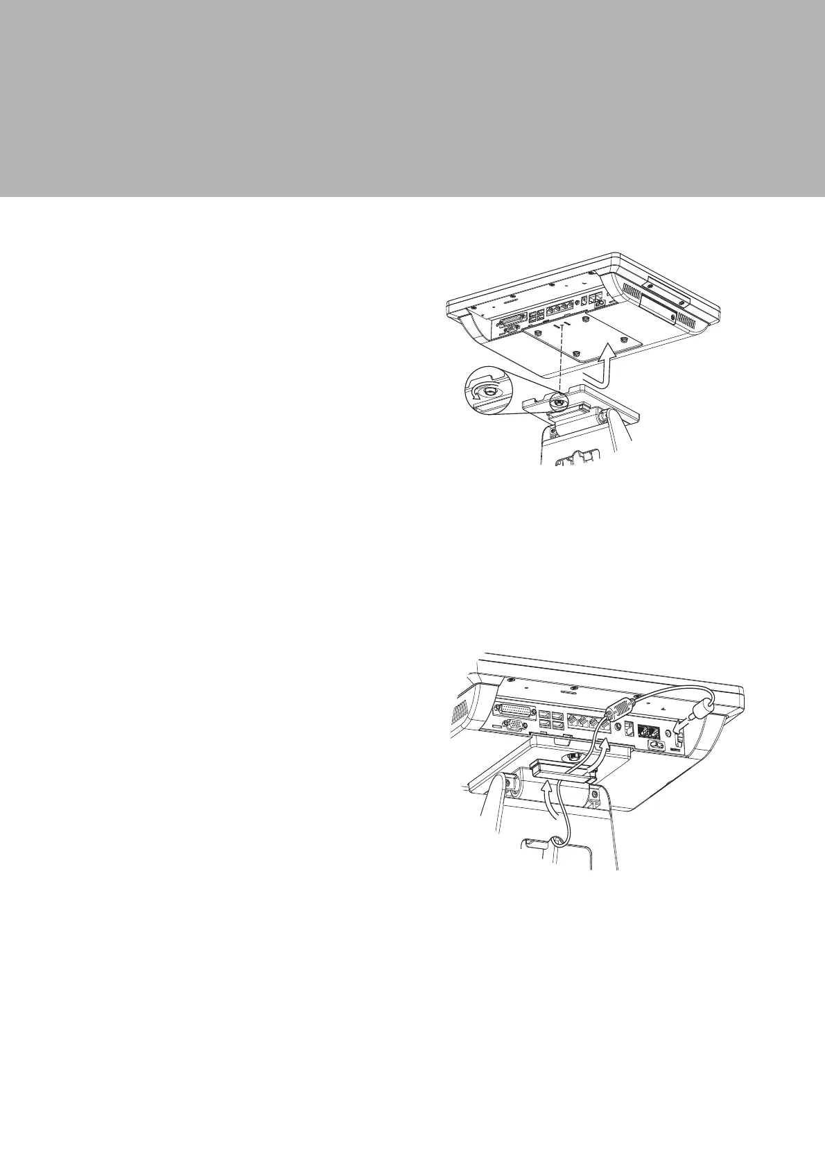 Power adapter is secured to the system stand by a holding bracket and screws.