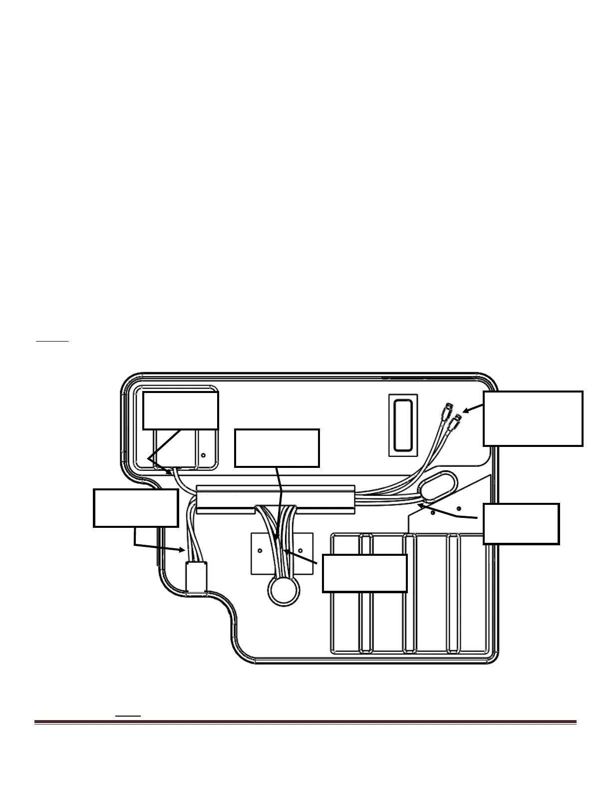 1) Begin with the base upside down on a flat surface (Figure 4). Take note of the various wiring harnesses.