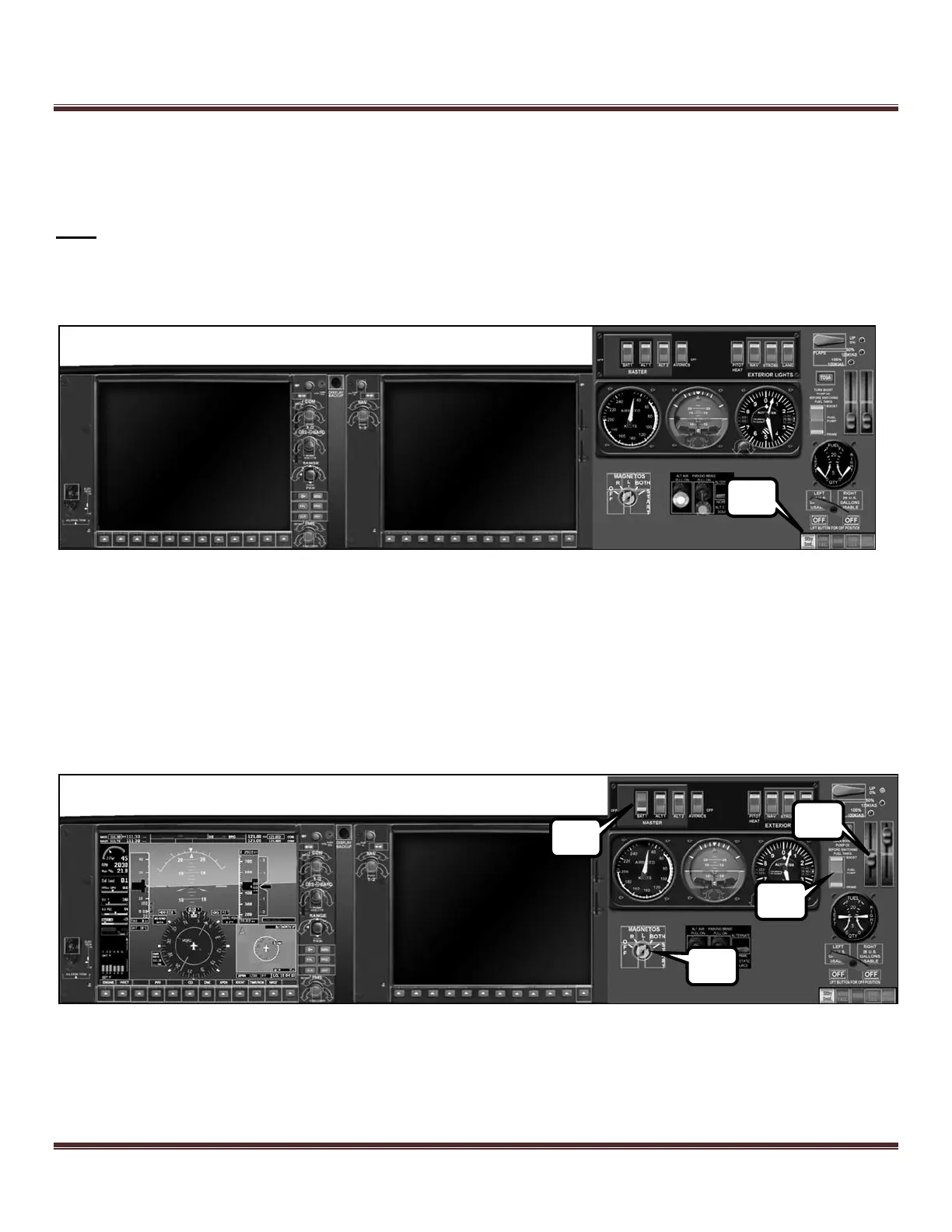 1) If the standby instruments and electrics panel are not visible (such as that depicted below), press the Stby Inst.