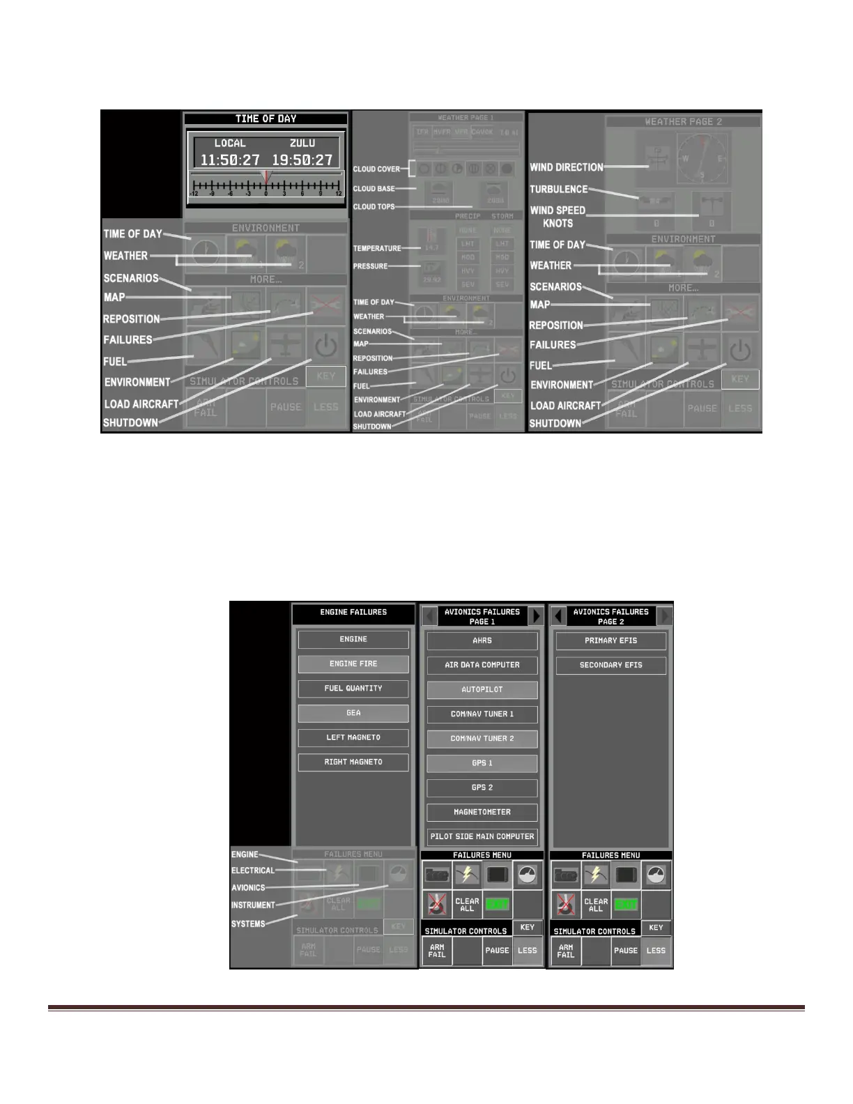 A variety of failure options are available in the failures menu; to access this menu select the FAILURES button on