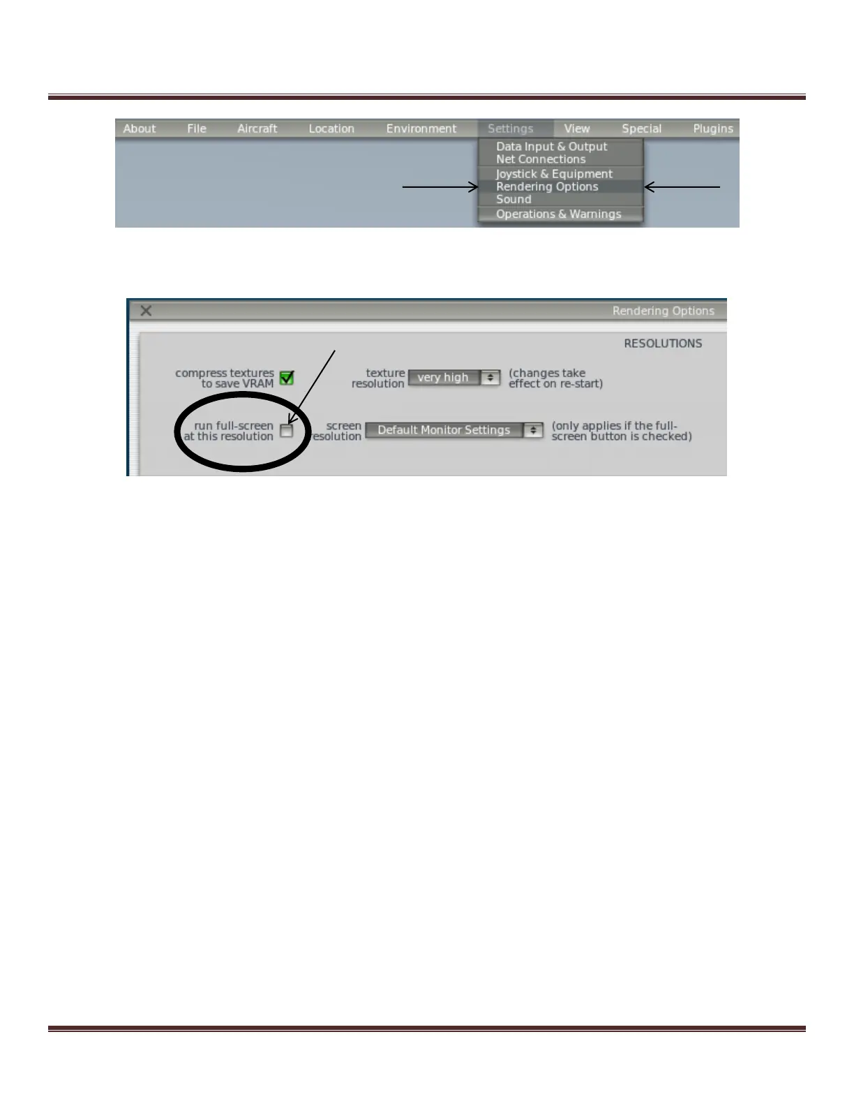 c. In the rendering options menu, in the top left, make sure to check the box labeled “run full-screen at