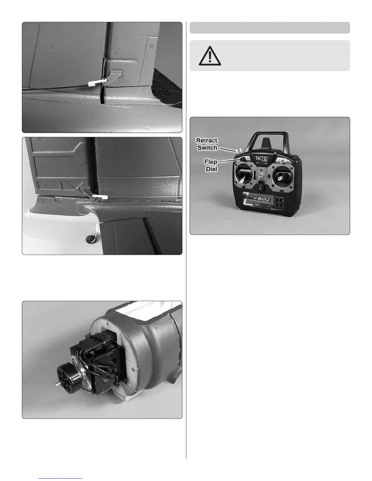 patch in the fuselage. Turn on the transmitter and move the