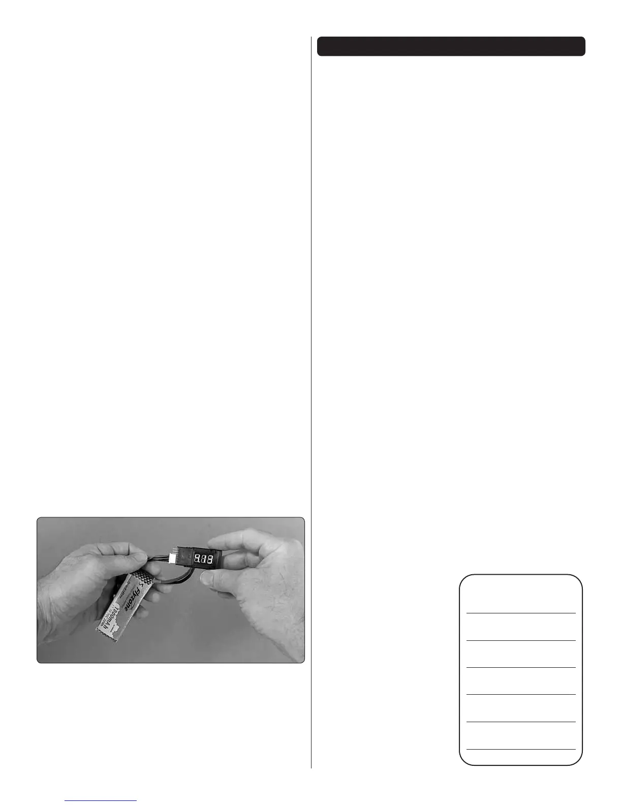 battery) and to check the battery after ight to make sure