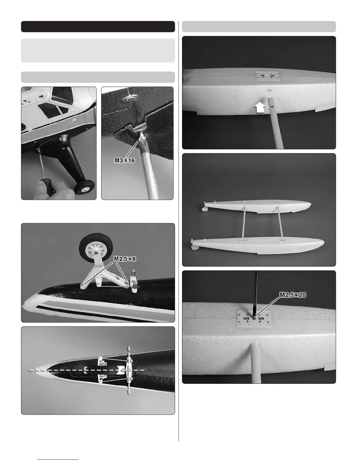 2. Mount the tail gear with two M2.5x8 screws, then fasten