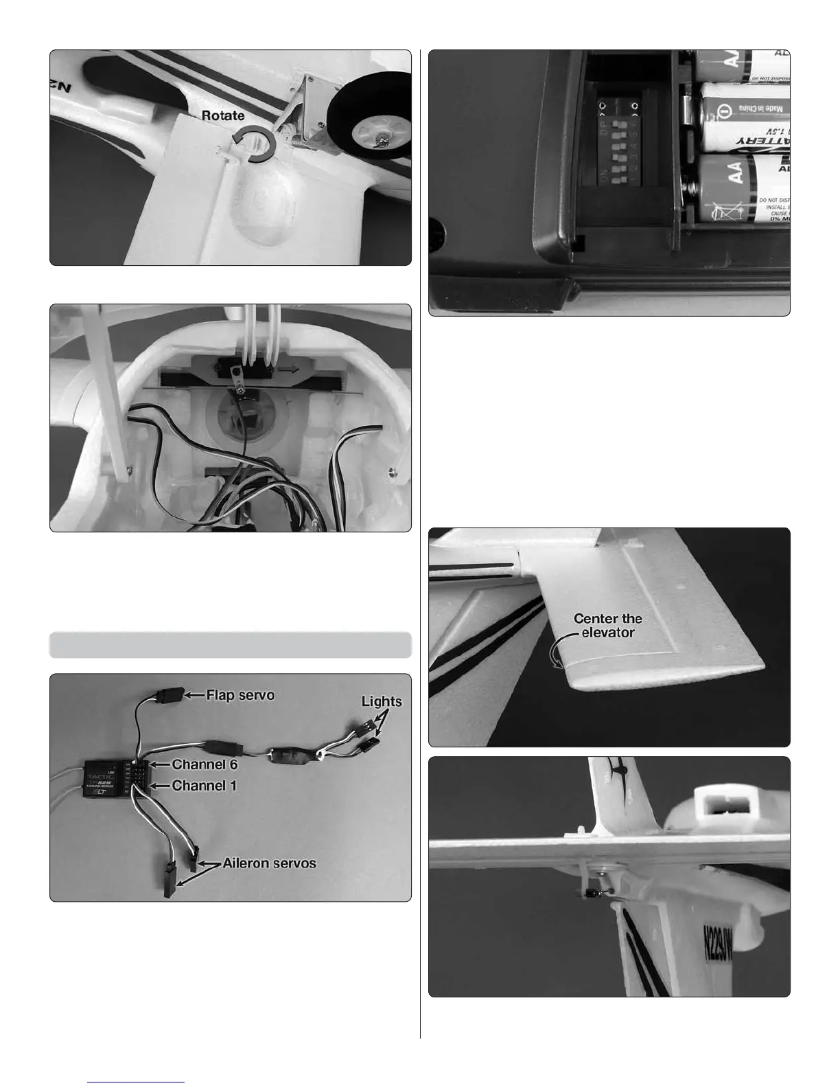 Elevator: CH2 Rudder: CH4 Flaps and Lights: CH6