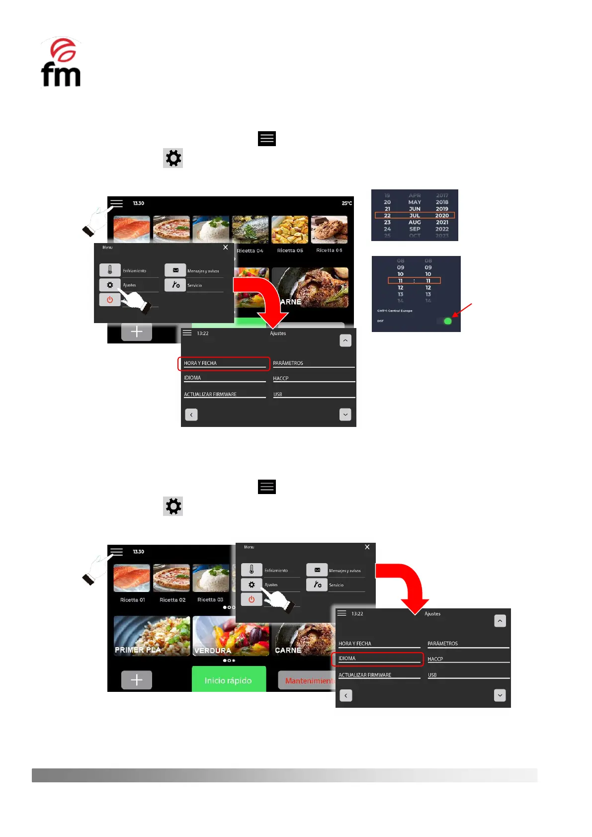 3. Click on the icon to access the settings menu and then click on “TIME AND DATE”.