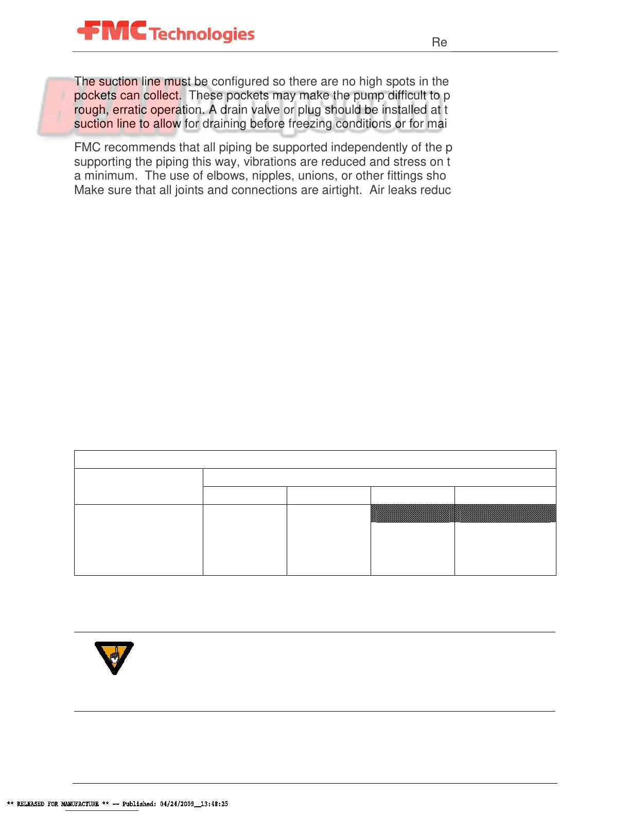 FMC recommends that all piping be supported independently of the pump. By