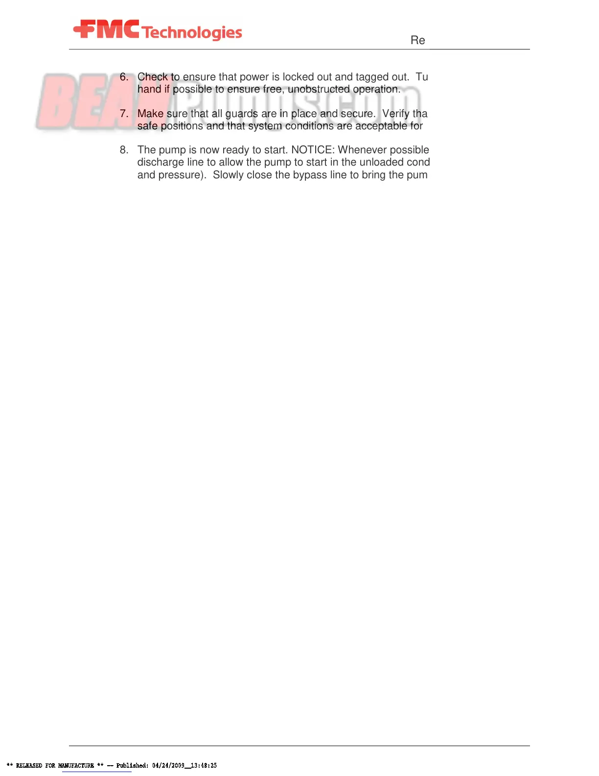 6. Check to ensure that power is locked out and tagged out. Turn the pump over by