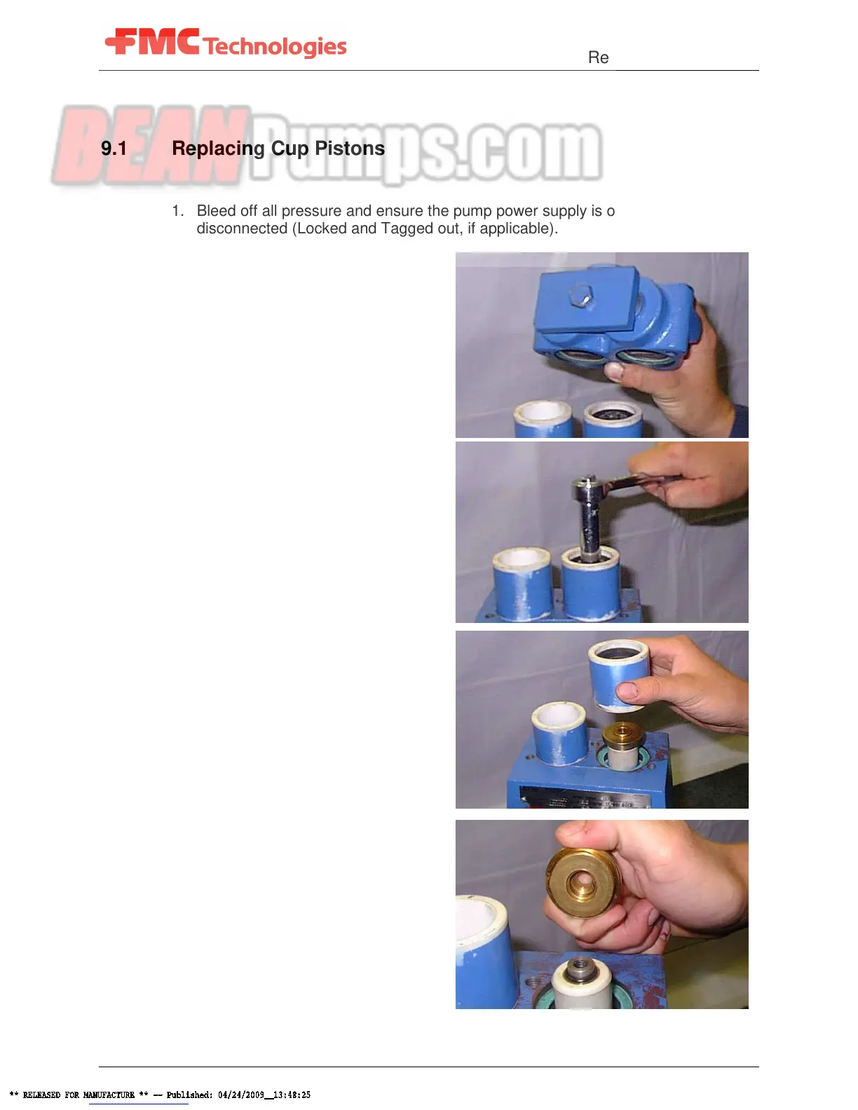 1. Bleed off all pressure and ensure the pump power supply is off and is