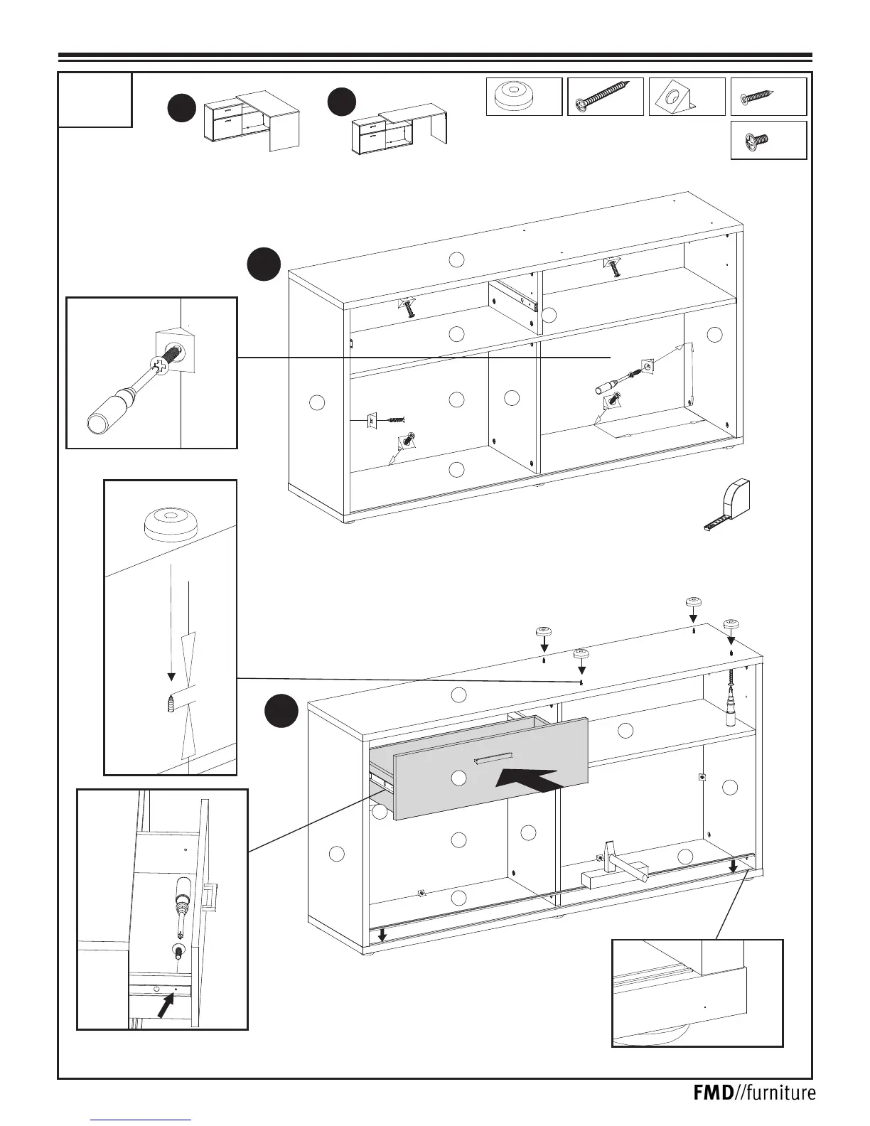 FMD DIEGO 367-001 - Module G2 Assembly; Step 1: Back Panel and Slide Installation