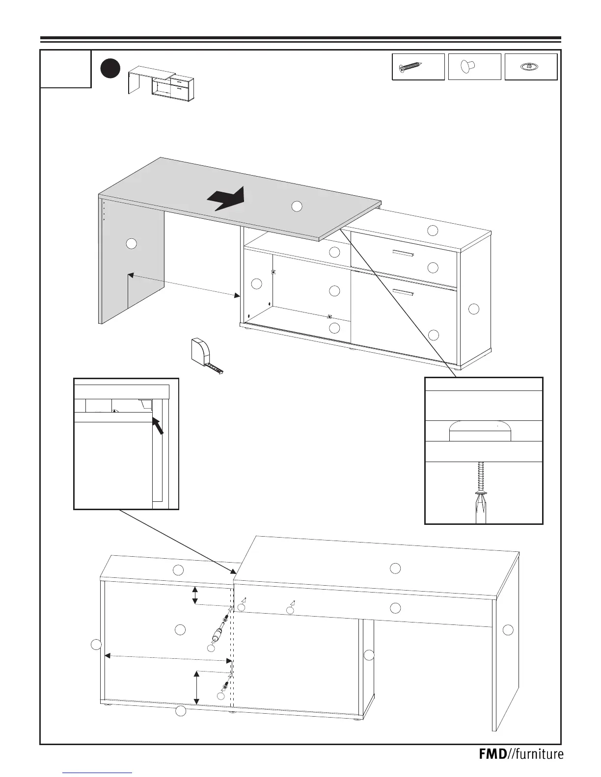 FMD DIEGO 367-001 - Module J3 Assembly; Step 1: Desk and Drawer Unit Integration