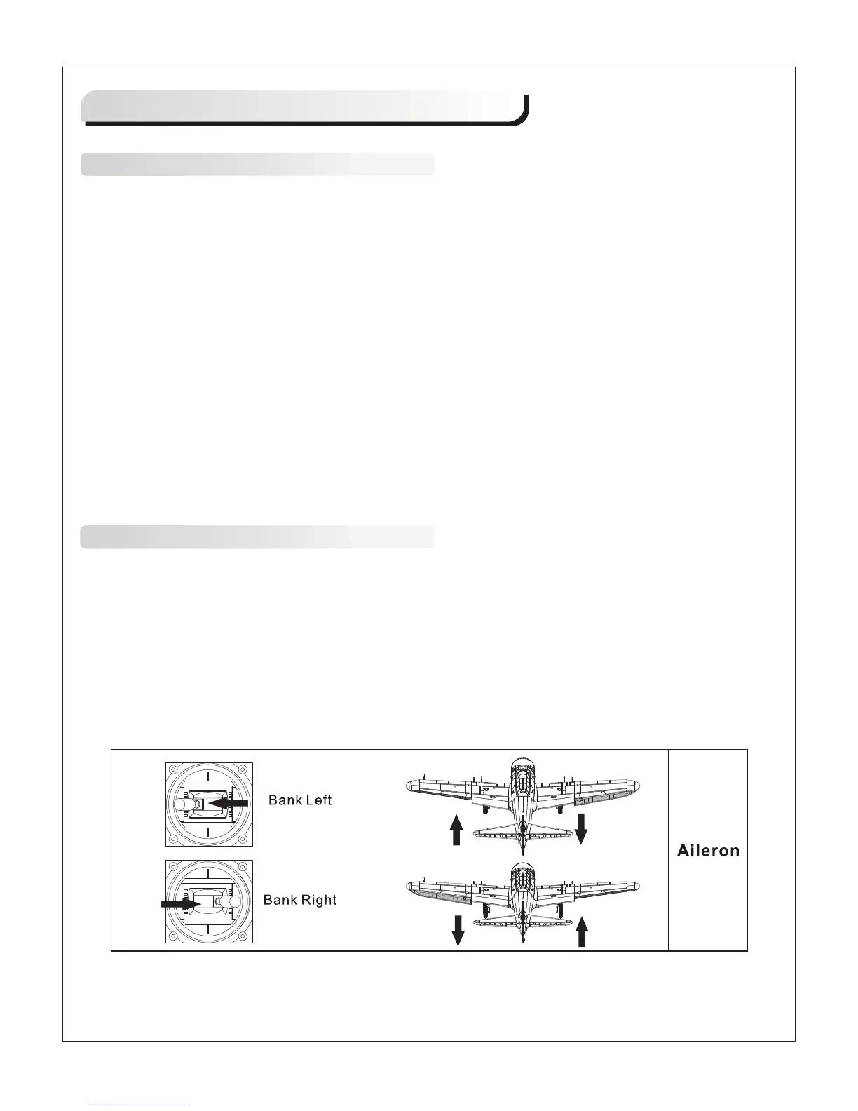 1. Move the controls on the transmitter to make sure aircraft control surface move correctly. See diagrams