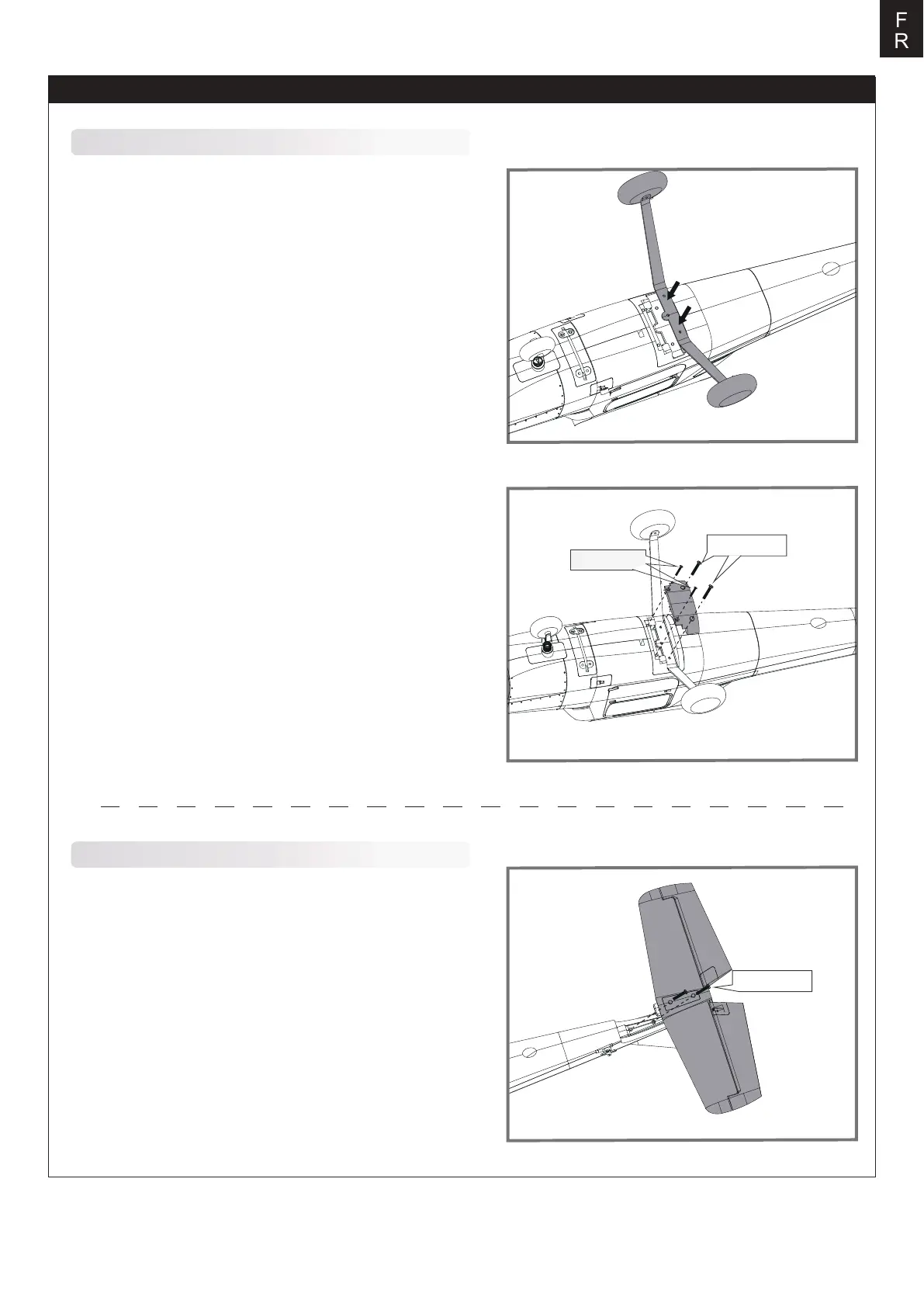 1. Fuselage posé à l’envers, placez l’ensemble du train principal dans