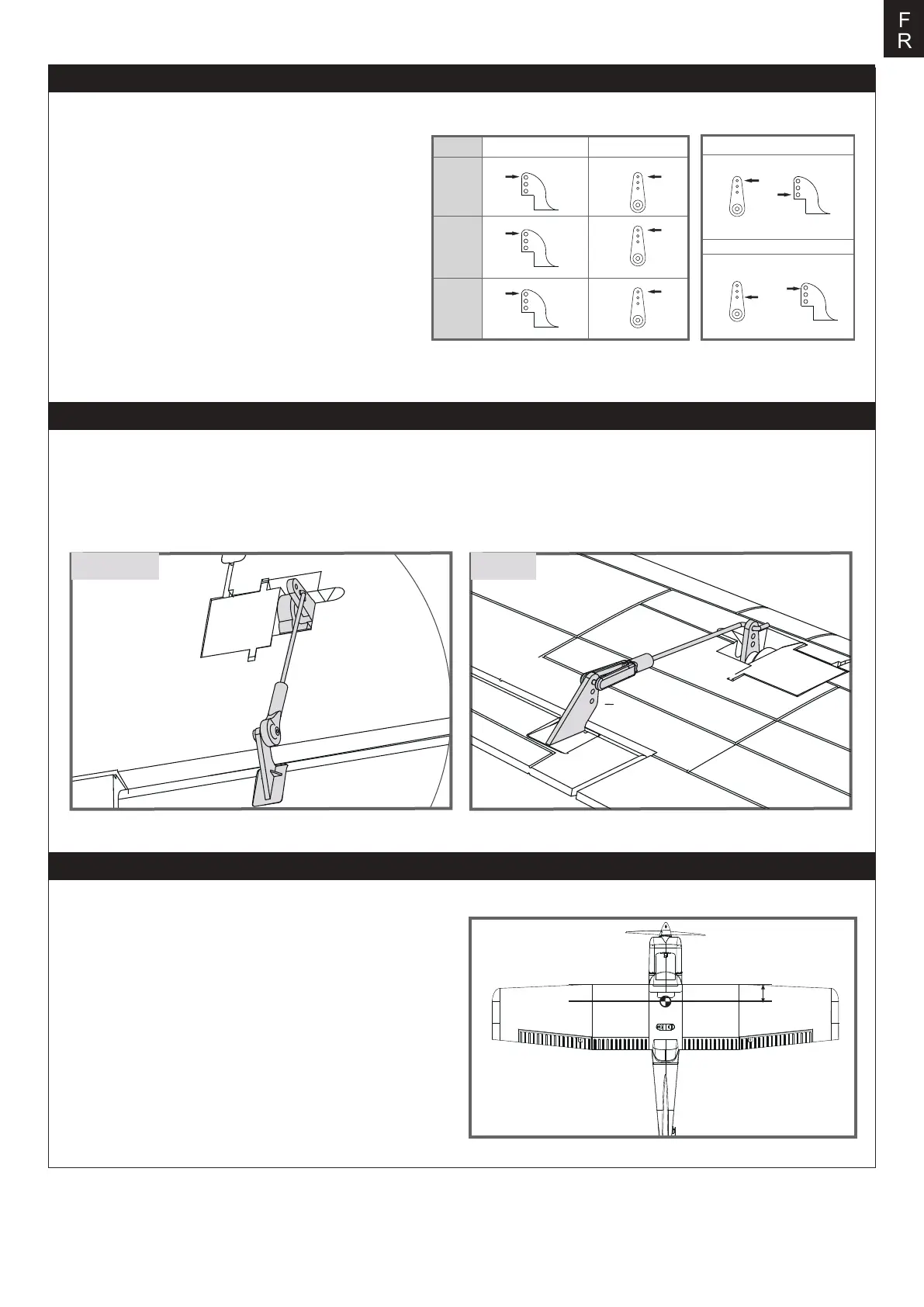 et de profondeur dans les trous des palonniers des servos correspondants comme montré (reportez-vous au chapitre « Réglage