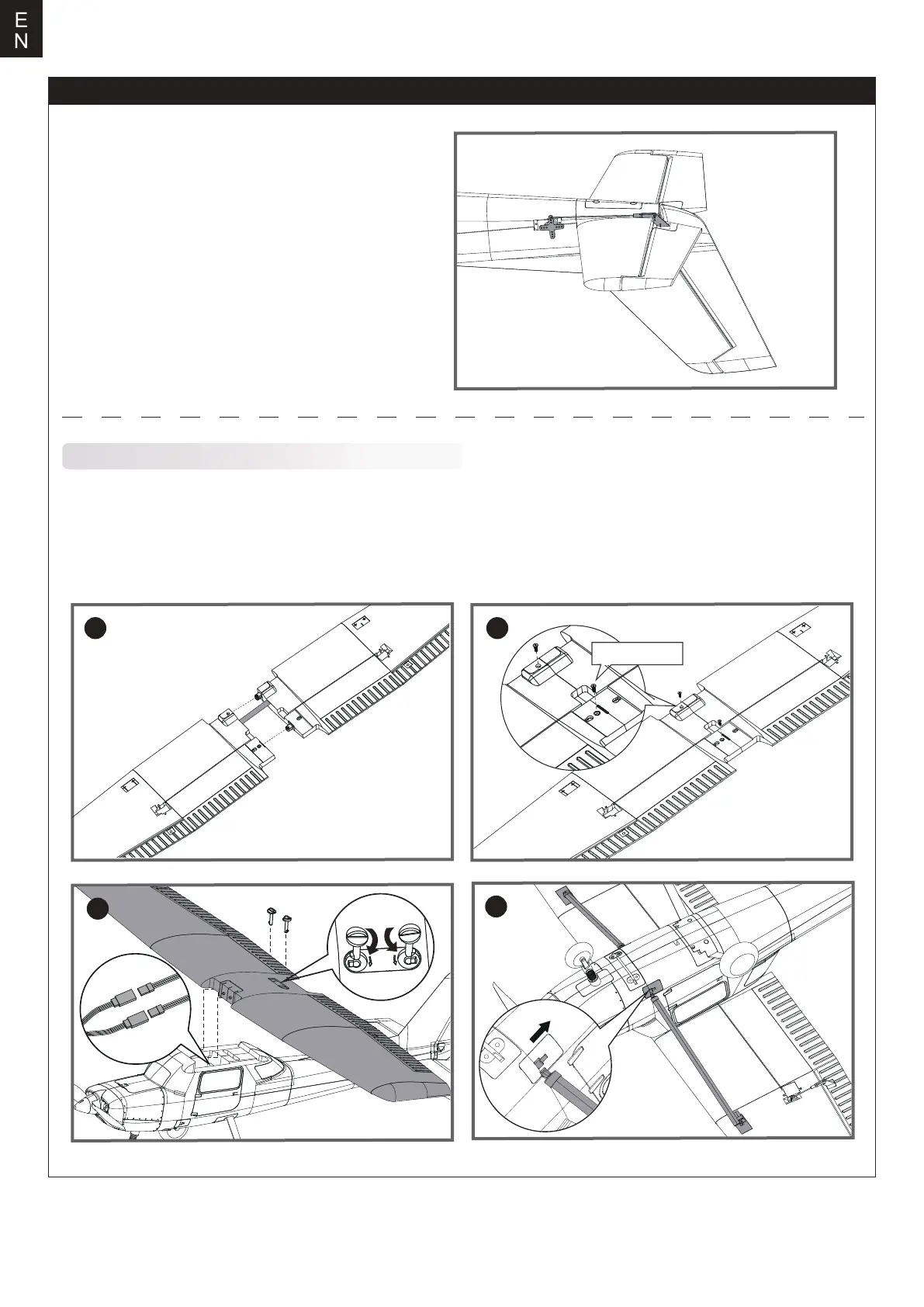 3. Connect the ailerons servo wires to their respective ports then attach the wing onto the fuselage.Secure the wing onto