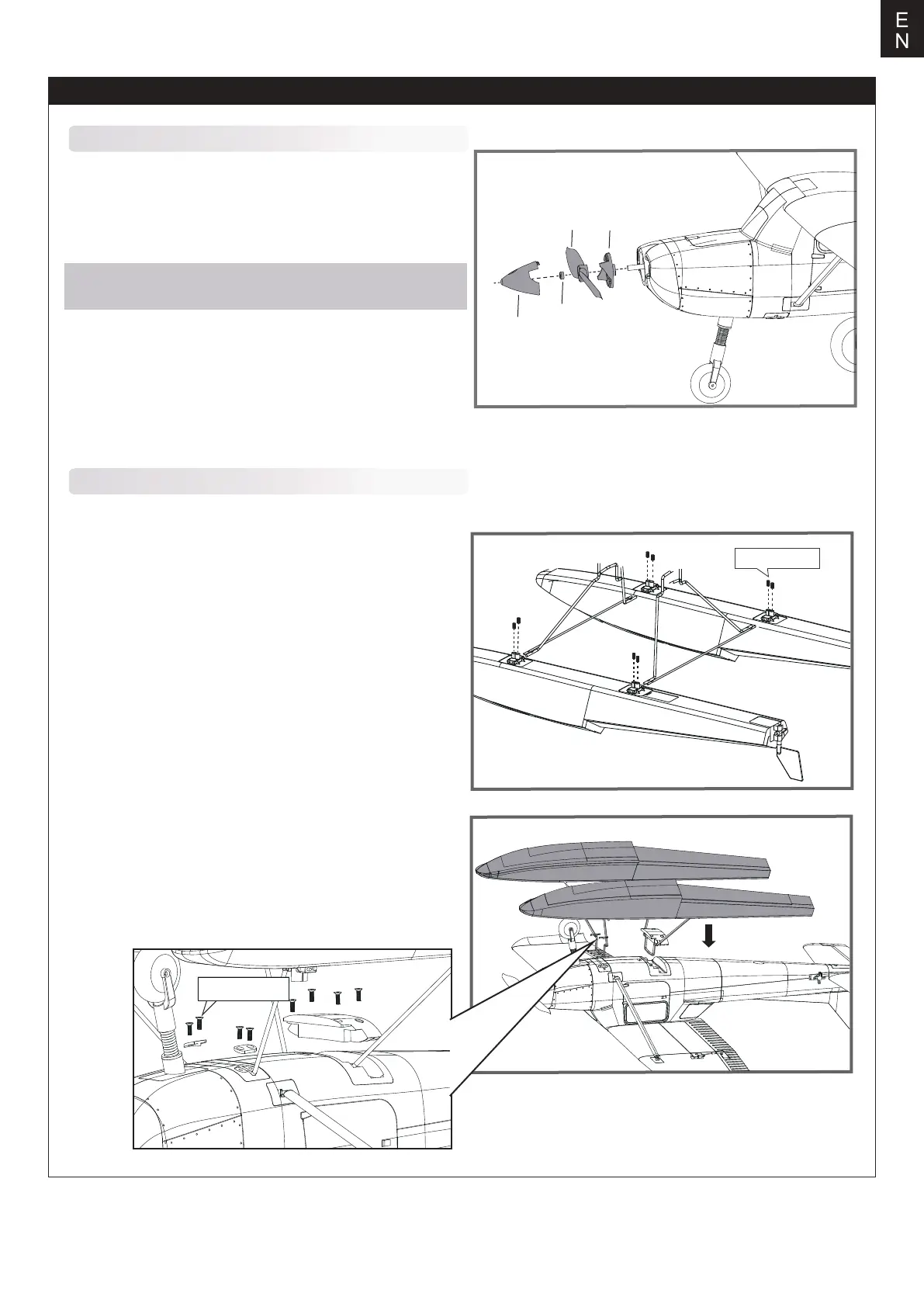 1. Connect the float struts to the fuselage as shown.