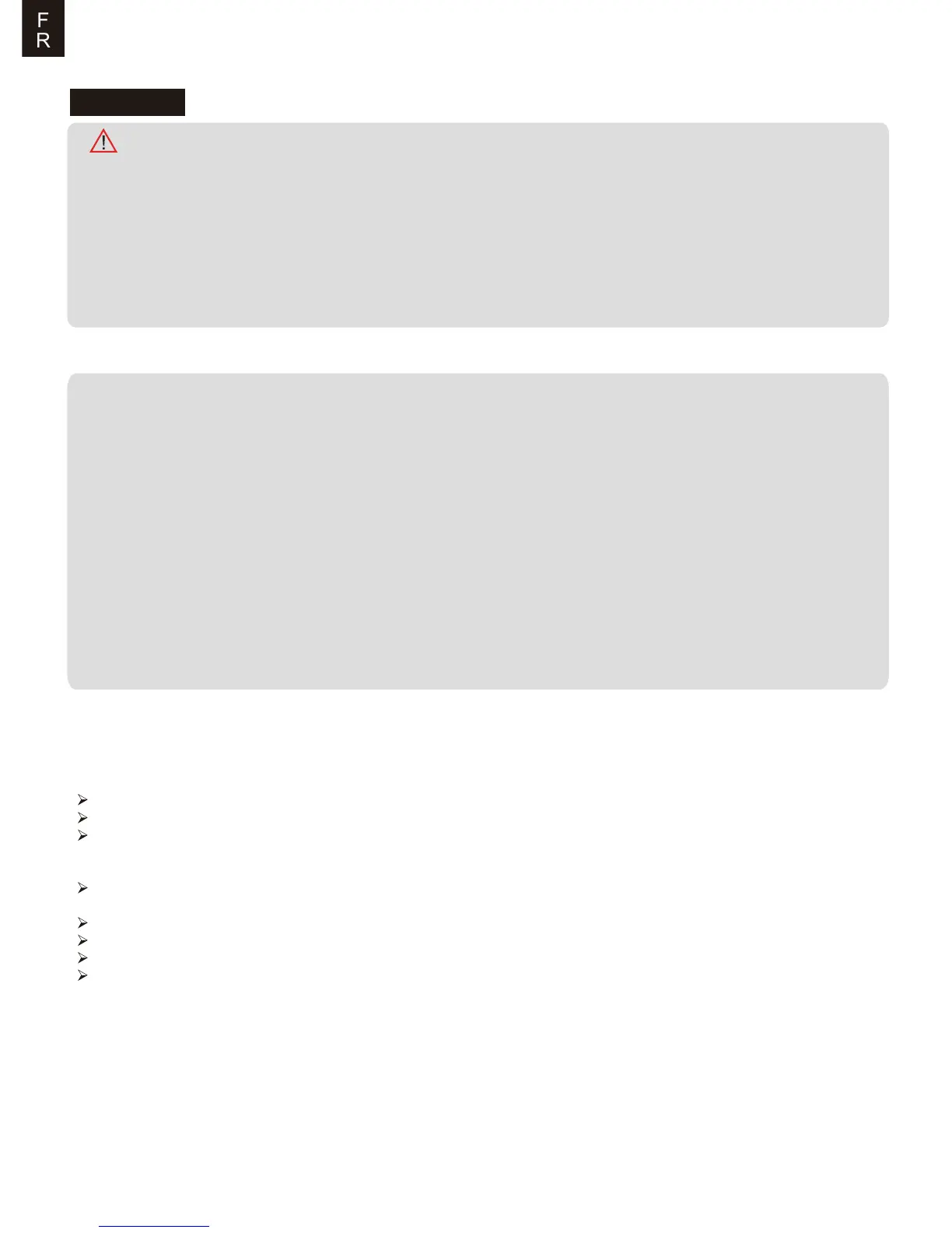 des blessures ou des dégâts au produit et envers des tiers. Ce produit n’est pas prévu pour une utilisation par des enfants sans la