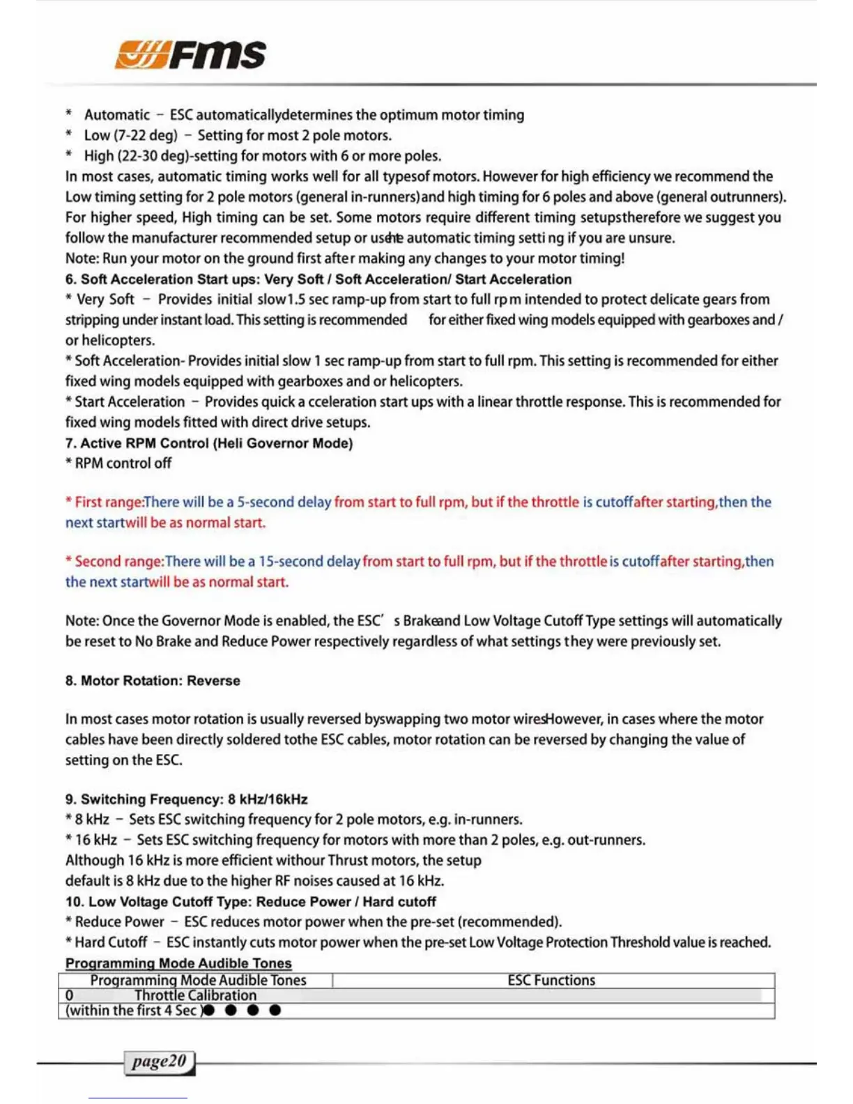 FMS 800mm Fox - Automatic Throttle Calibration; Normal ESC Start Up Procedure; Entering Programming Mode; General Safety Precautions