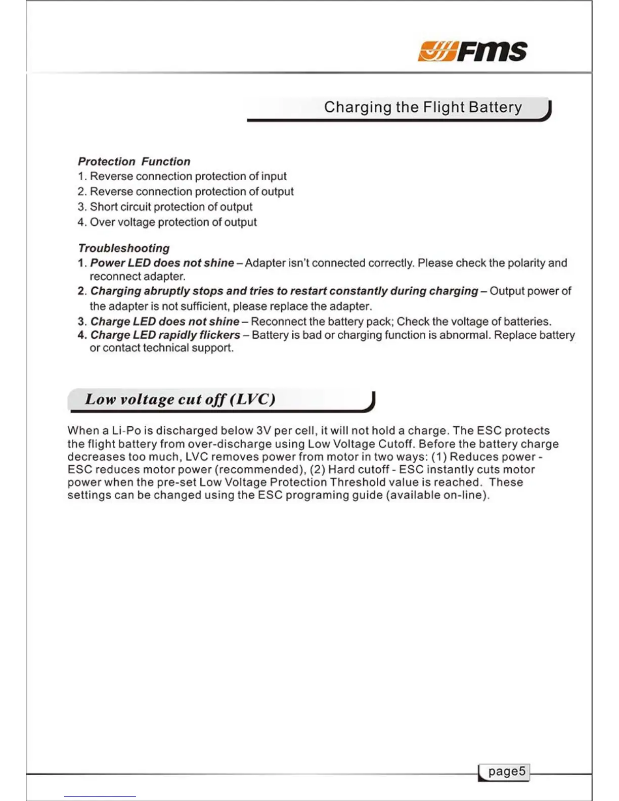FMS 800mm Fox - Troubleshooting; Low voltage cut off (LVC)