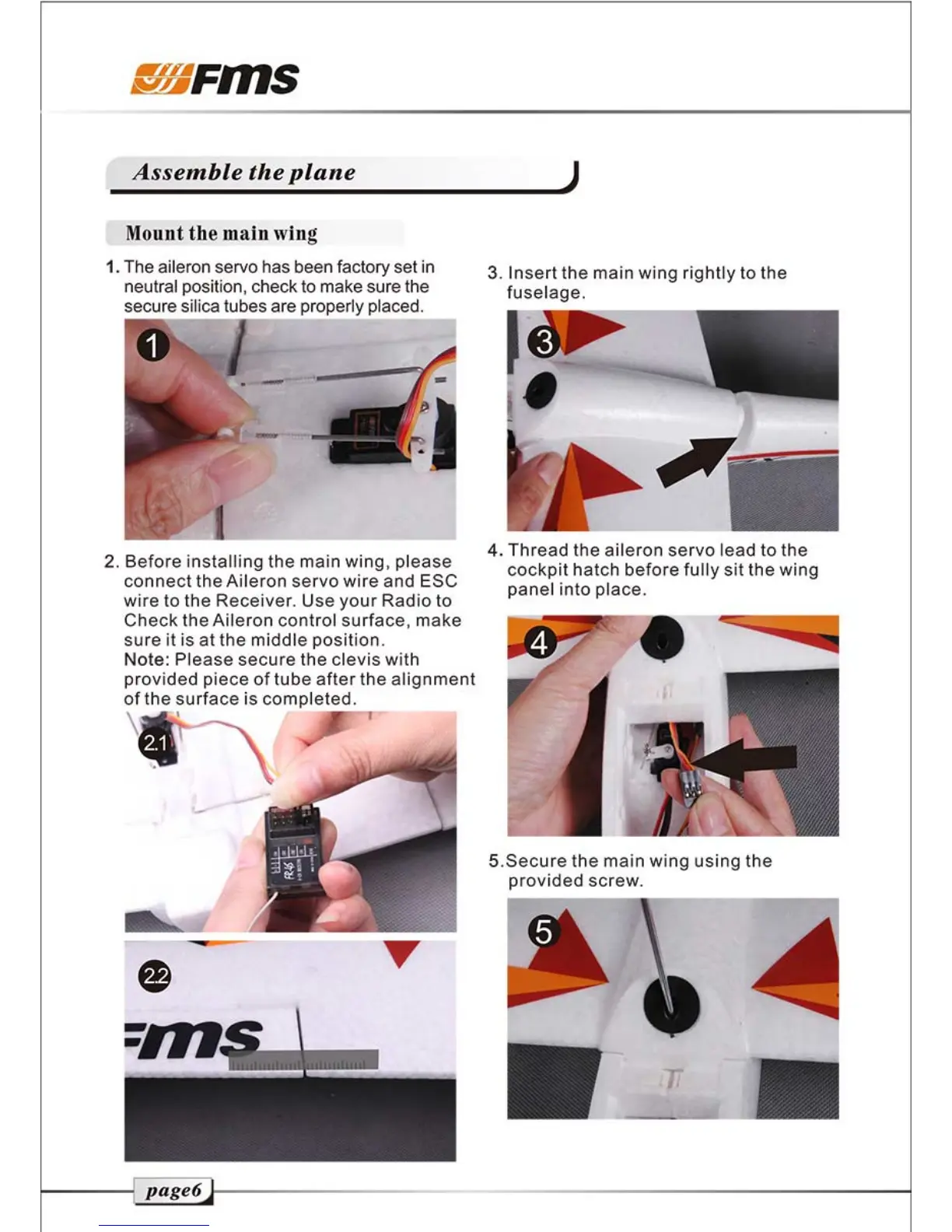 FMS 800mm Fox - Assemble the Plane; Mount the main wing