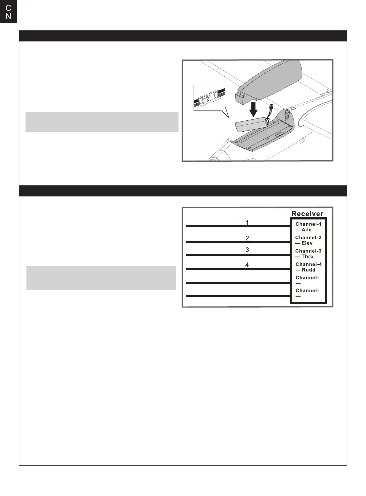 收机副翼通道、升降舵舵机信号线插入接收机升降舵通道、