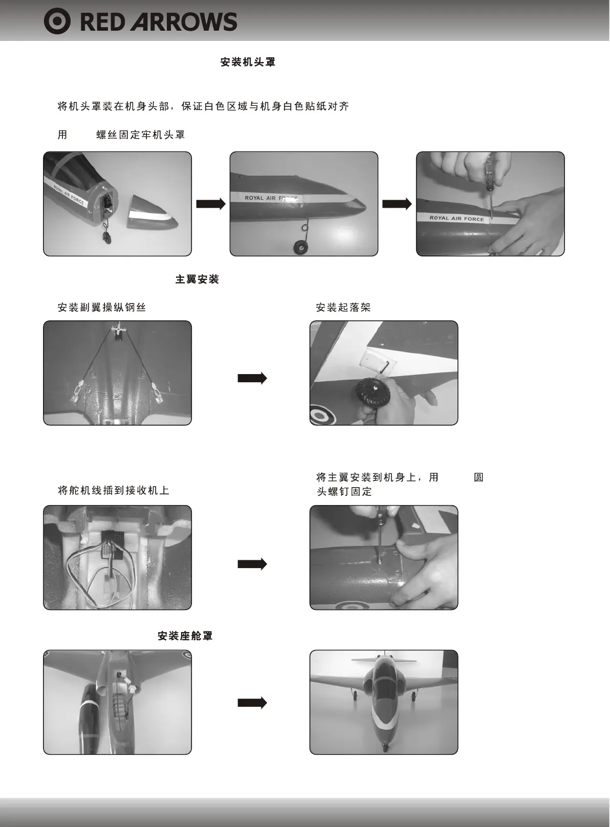 A. Put the head cover of plane on the head of fuselage; make sure the white region face to face the white