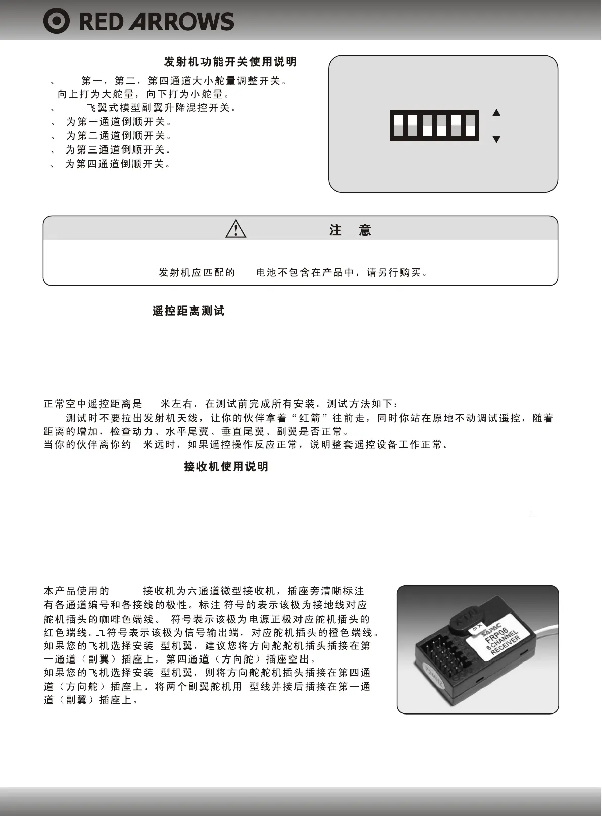 The FRP06 receiver is six channel miniature receiver. Each channel is marked with a number (1 to 6).