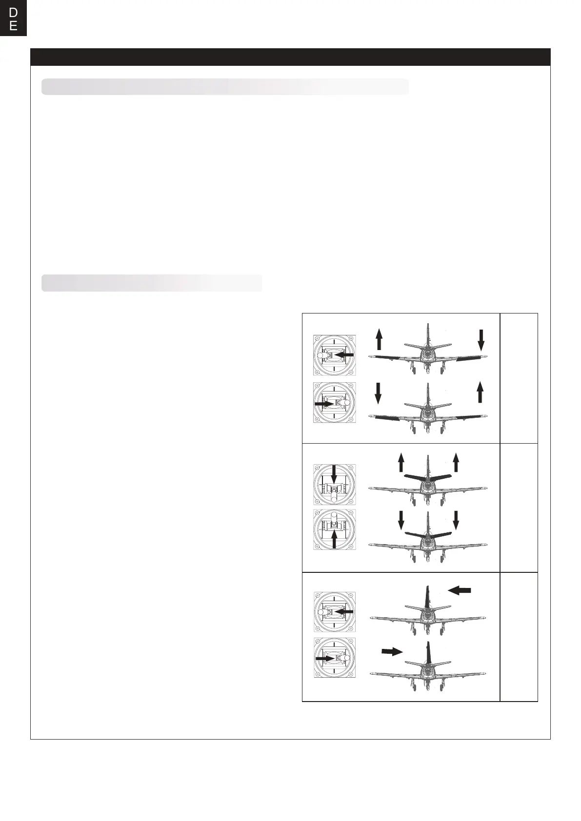 dass sich die Ruder korrekt bewegen. Sehen Sie dazu die