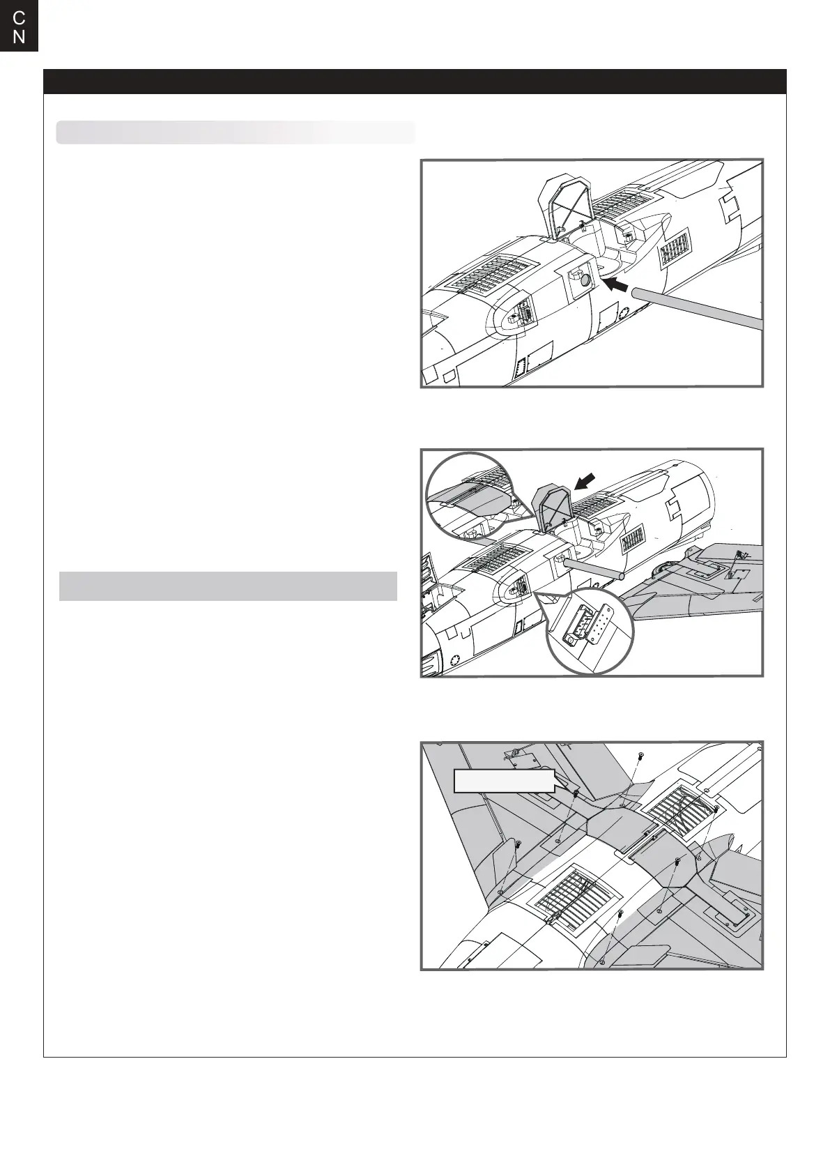 注意:确保插牢机翼和机身的对接插头。