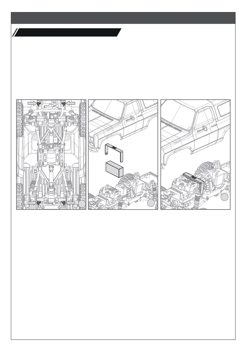 Caution: Do not crush or damage the wiring when attaching the car shell to the chassis.