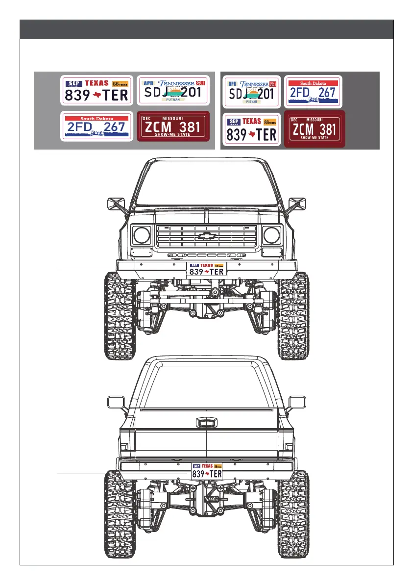 请参考历史资料或依据个人偏好,在以下贴纸中选出一套,按照所列的步骤粘贴。(贴纸涂装仅供参考,玩家可自行DIY)