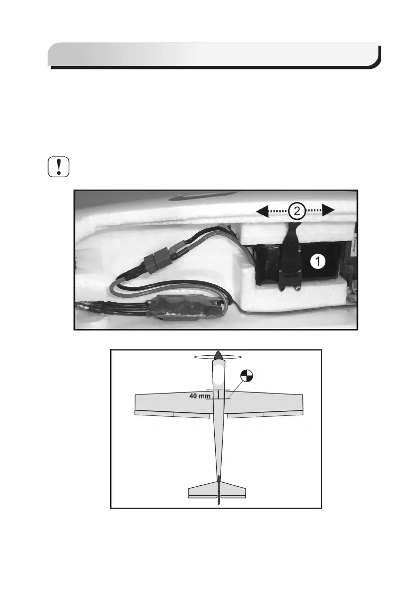 Het model moet door een geschikte opstelling (2) van de vliegaccu (1) zo worden ingesteld dat het zwaartepunt