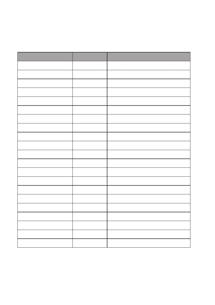 In de volgende programmeertabel ziet u welke geluidssignalen of melodieën aan welke functies werden toegekend.