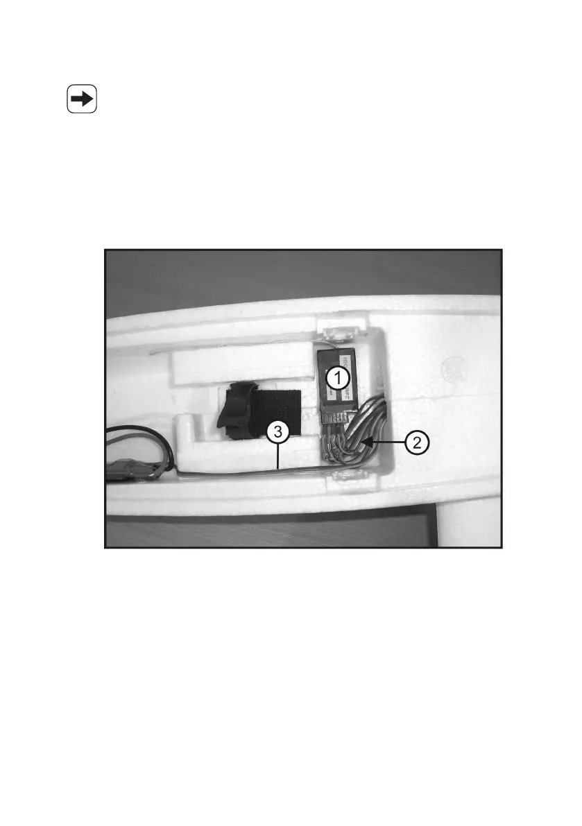 Der Empfänger (1) wird im hinteren Teil des Cockpits mit einem Klettband oder doppelseitigen Klebeband im Rumpf