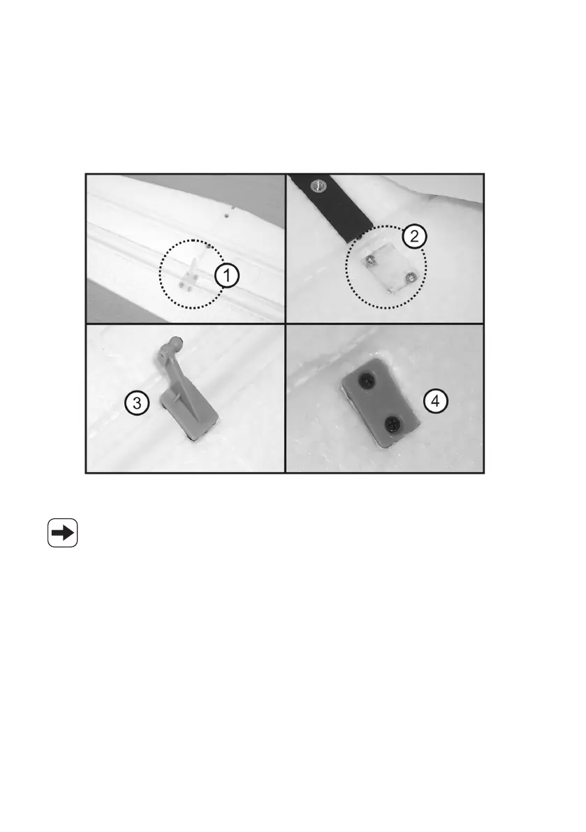 For this, insert the rudder horn into the underside of the elevator in the prefabricated indentation (1) and screw them