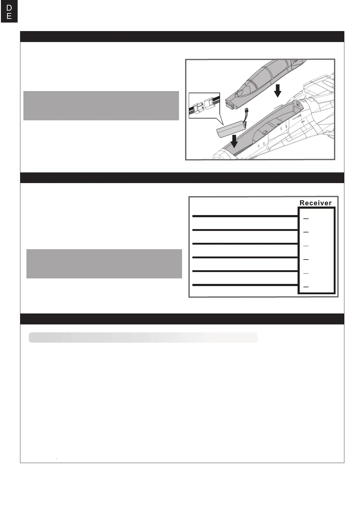 Akkuauswahl und Einbau:Wir empfehlen einen Lipo Akku mit 22.2V 5000-6000mAh 50C. Sollten Sie einen anderen Akku