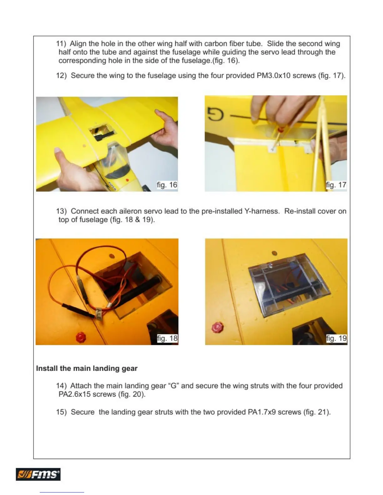 FMS J-3 - Main Wing Assembly Completion; Connecting Aileron Servo Leads; Main Landing Gear Installation; Attaching Main Landing Gear