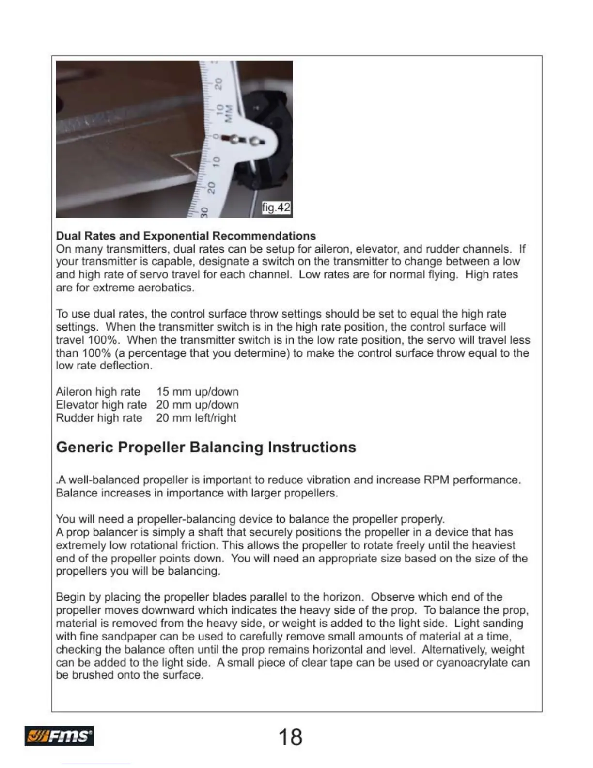 FMS J-3 - Dual Rates and Exponential Recommendations; High and Low Rate Settings; Propeller Balancing Instructions