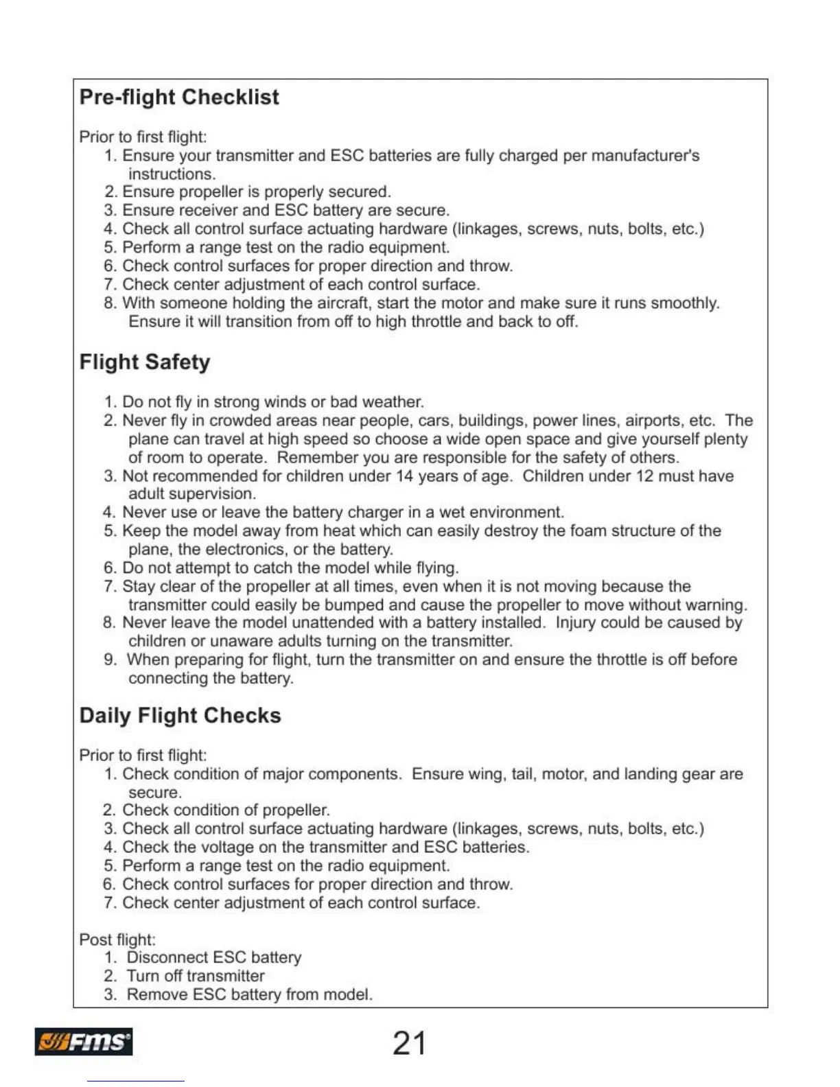 FMS J-3 - Pre-flight Checklist; Pre-flight Checks; Flight Safety Guidelines; General Flight Safety Rules