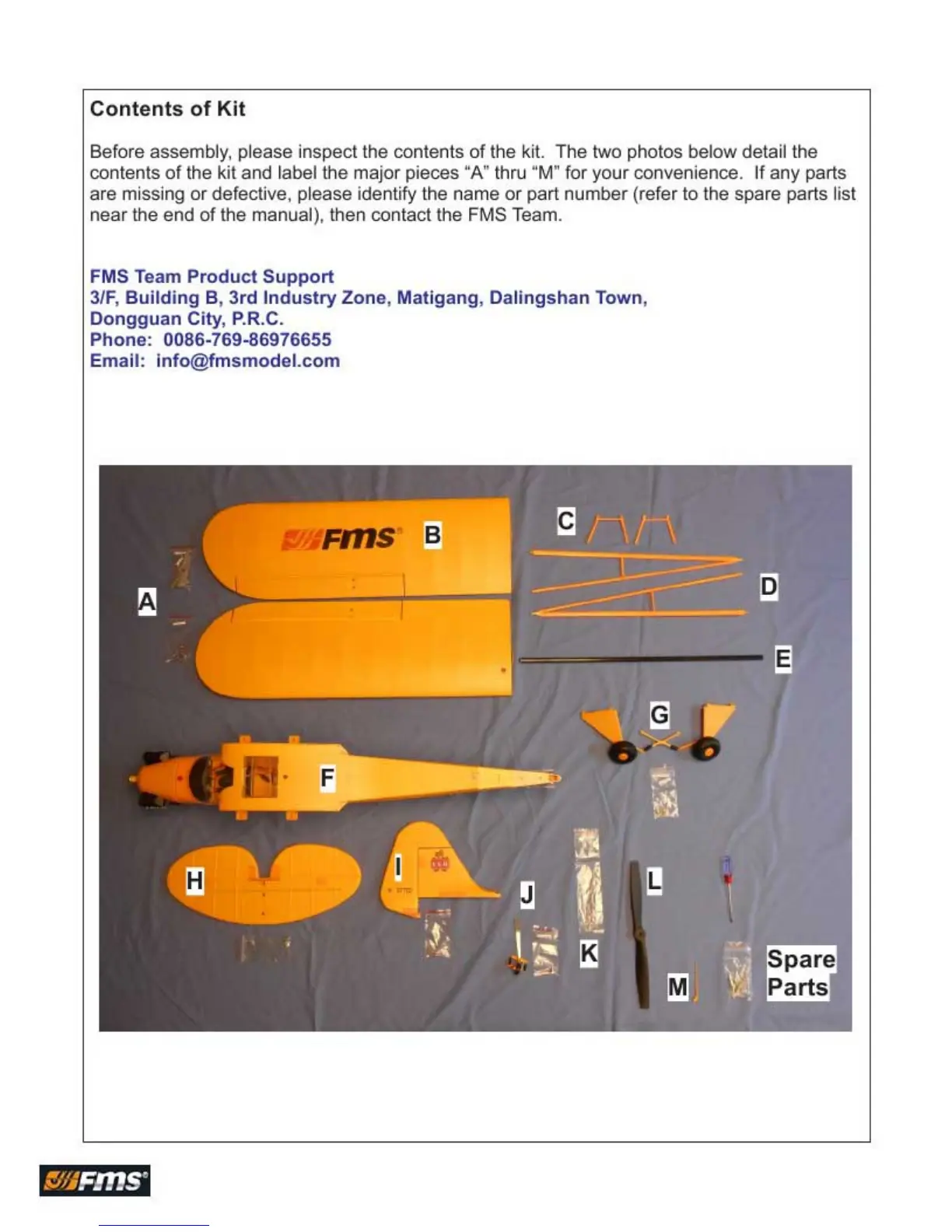 FMS J-3 - Contents of Kit; Kit Component Identification; FMS Team Product Support