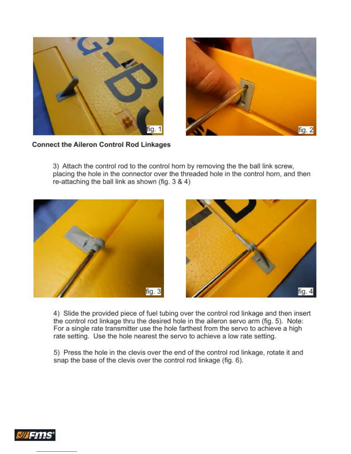 FMS J-3 - Aileron Control Rod Linkages; Connecting Control Rods to Horns; Connecting Rods to Servo Arm