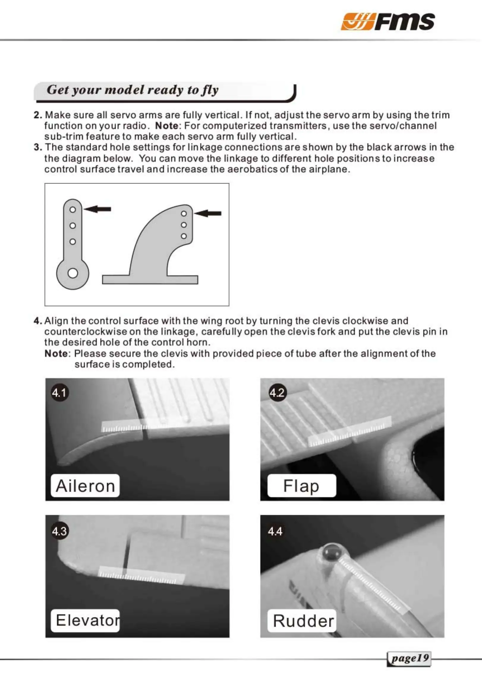 FMS Sky trainer 182 - Control Surface Trims and Linkages